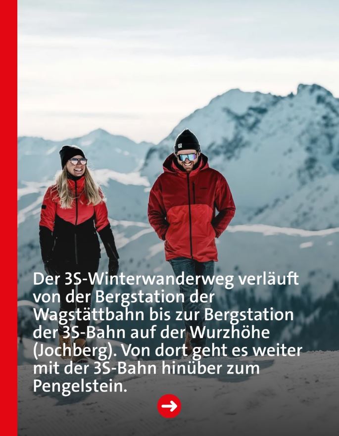 Für Alle die abseits der Pisten beim Winterwandern Ihr Glück in den Bergen finden: Kombination aus einer leichten, aber sehr schöne Wanderung vor der beeindruckenden Kulisse der Kitzbüheler Alpen und einer sehr beeindruckenden Fahrt mir der 3S Umlaufbahn.